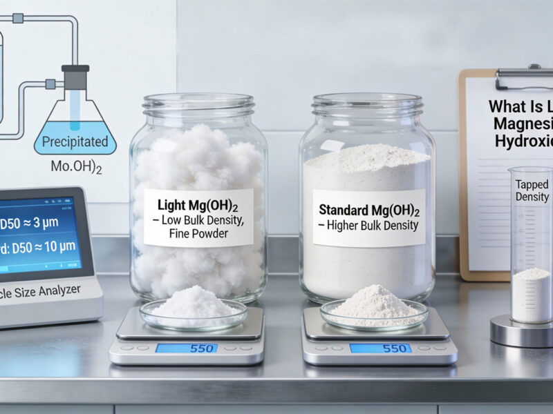 Some pharmacists prefer preparing the mixture “in-situ” by reacting Magnesium Sulfate with Sodium Hydroxide. However, using our pre-manufactured Light Magnesium Hydroxide Powder is safer, ensures consistent purity, and eliminates the need to wash out byproduct salts (like Sodium Sulfate).